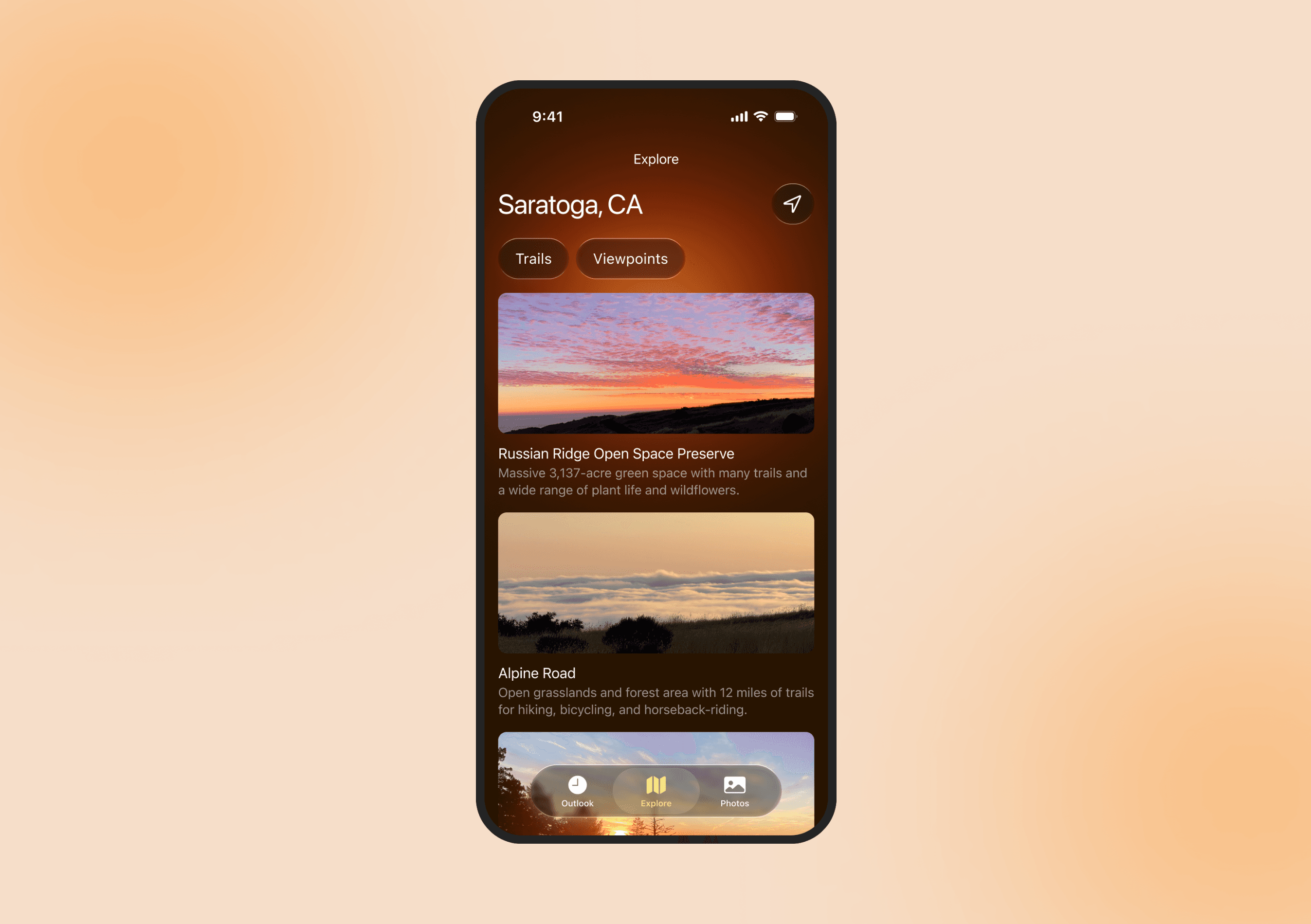 This view allows users to feel connected to their community by showing recommendations that can be filtered by trails or viewpoints.