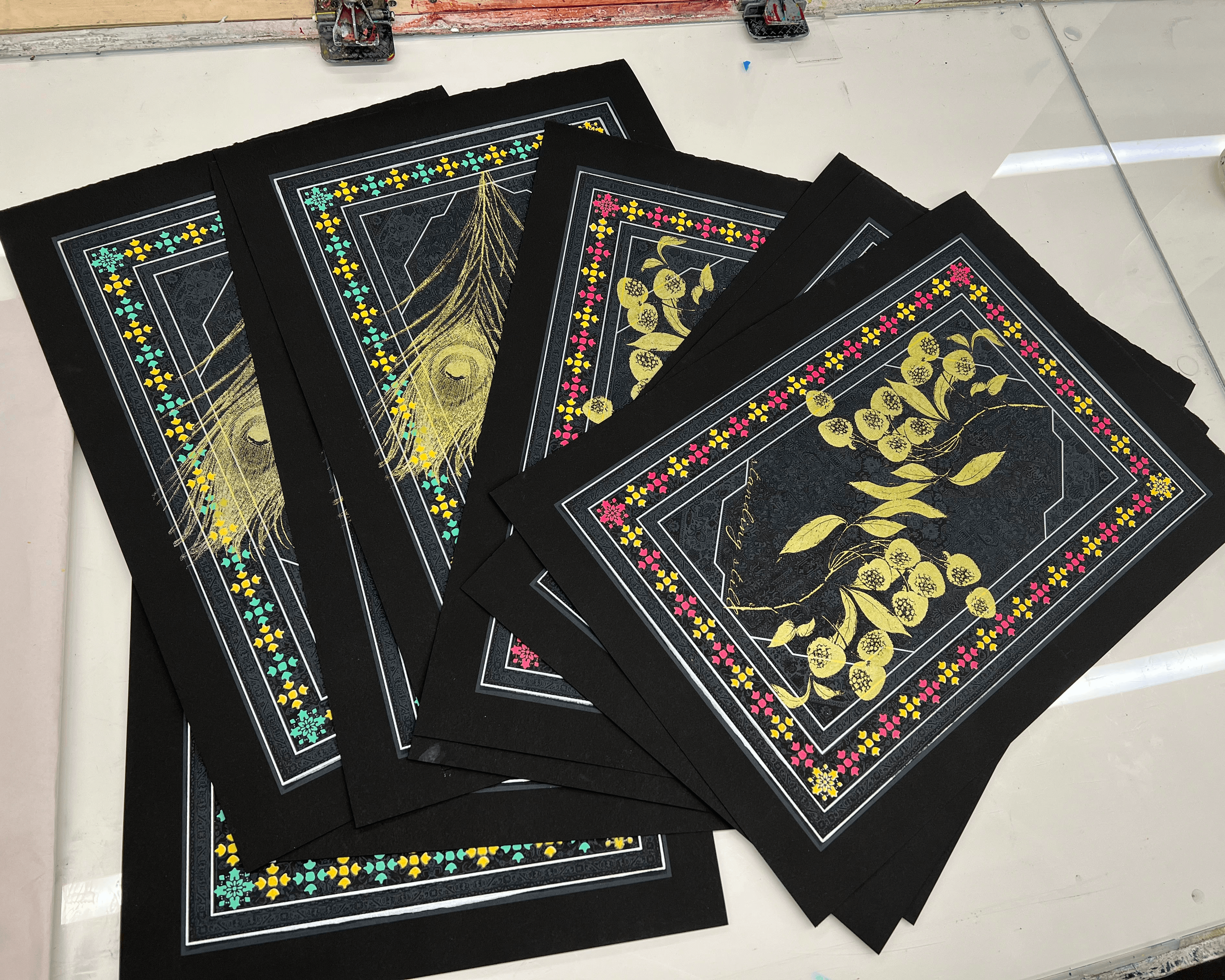 These silkscreen posters were all made during an elective course in my final semester at Parsons. This was my first experience with silkscreen printing, and I slowly fell in love with the process. I struggled at first since I am so used to digital mediums, but after I got a grasp on the technique and figured out what types of elements work and don't work, I was able to fully immerse my self in the process. Silkscreen printing is a manual printing process, so it was a really good break from staring at my computer screen all day.