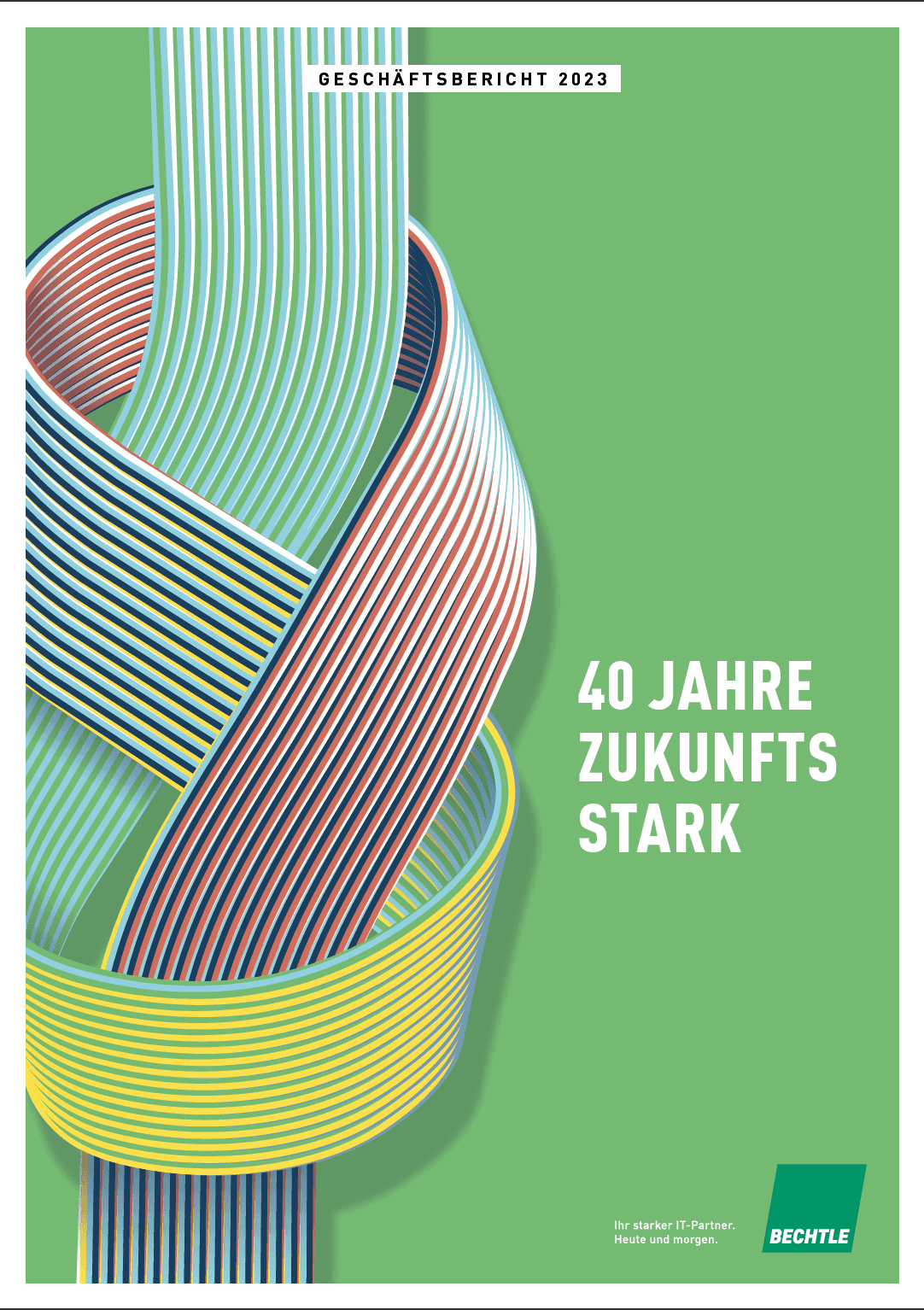 The 2023 annual report for Bechtle was a very important one because it also celebrated the 40 year anniversary for the company. This was also the first year that the annual report was transitioned to being digital only. The idea for the cover and identity was to portray stability and strength, which I achieved through using a knot as the main design. My internship ended before the report was completely finished, so after I left the lead designer created a motif out of the cover I designed to be used on the chapter divider pages in the report, and as collateral in the end of year conferences. The design was also later used by the motion graphics designer to to create animations.